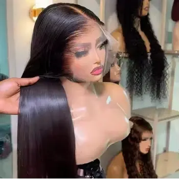 13x4 tutkalsız şeffaf dantel ön peruk satıcıları 13x6 düz doğal Remy saç kemik düz perulu saç peruk